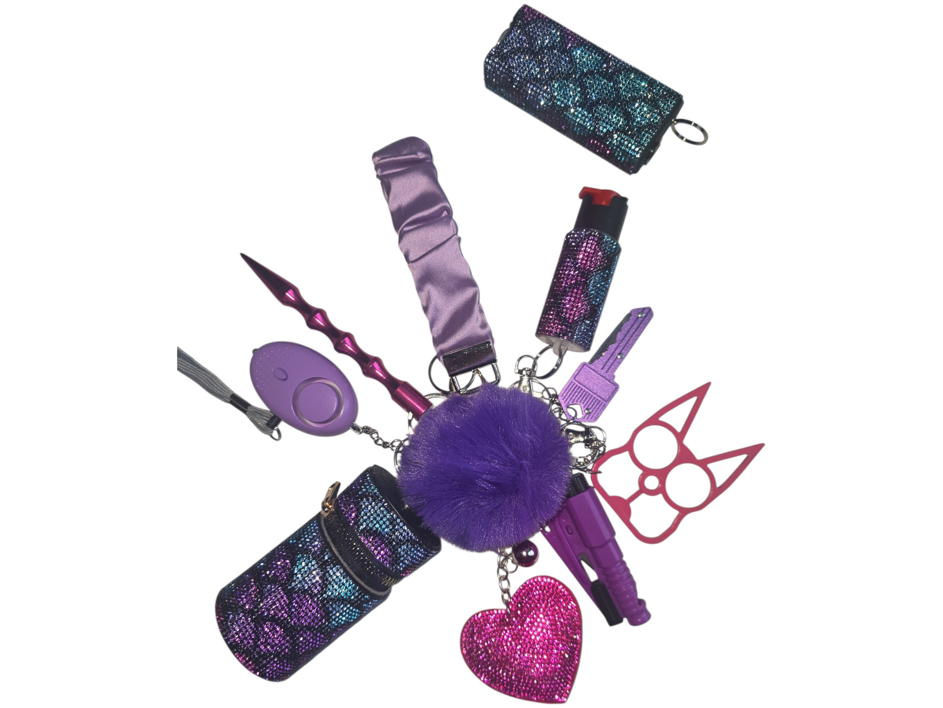 Stay prepared and protected wherever you go with our scrunchie-Style Self-Defense Keychain, designed with both convenience and safety in mind. Featuring a durable scrunchie wristlet for quick release during emergencies, this set is the perfect combination of everyday function and personal protection.